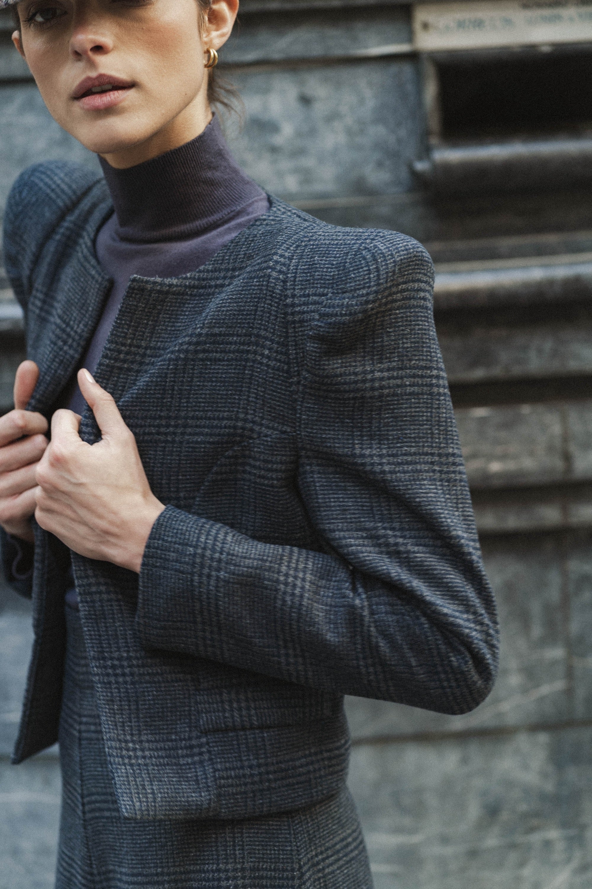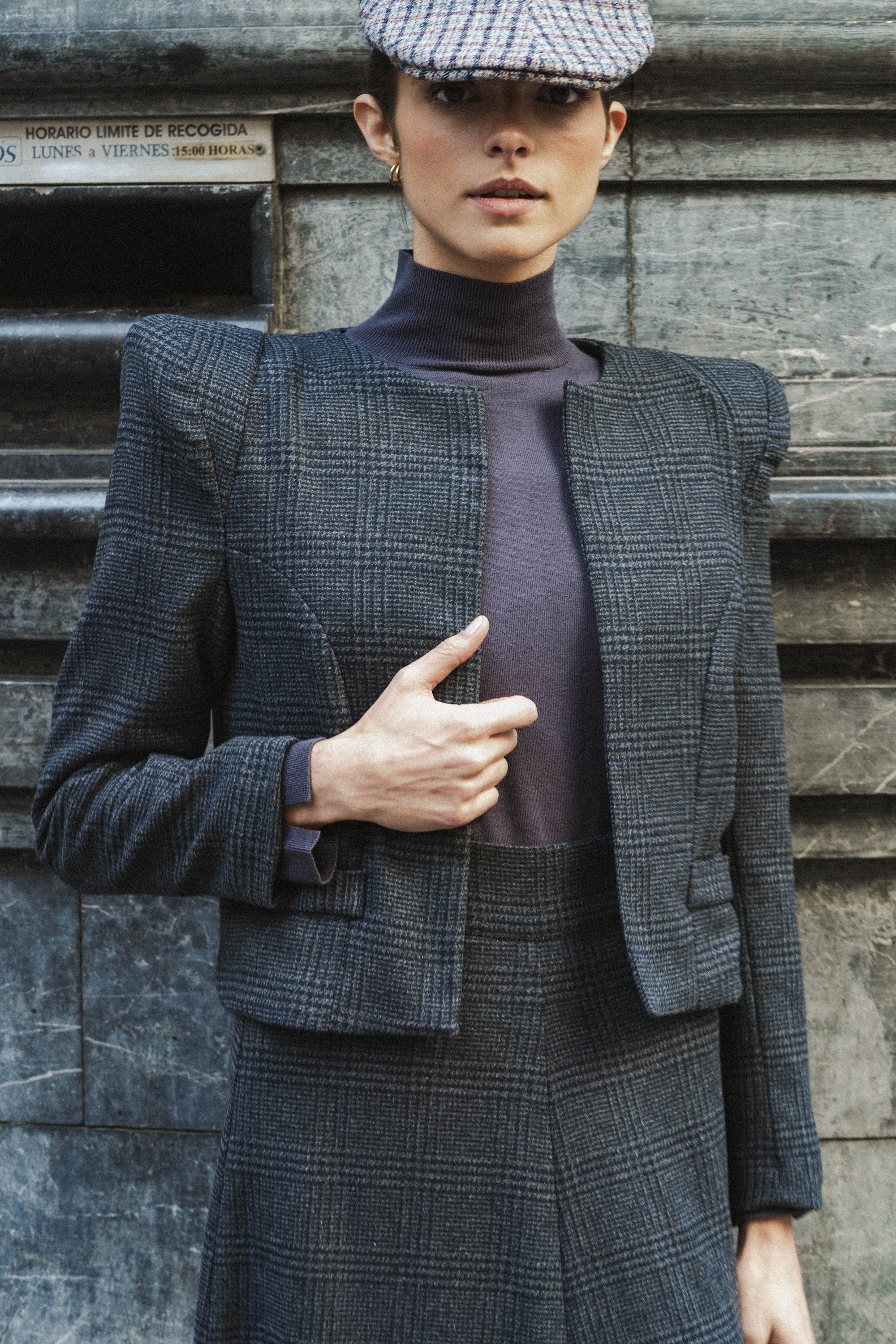 CHALECO SOLAPA CUADRO PRÍNCIPE DE GALES NAVY
