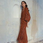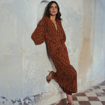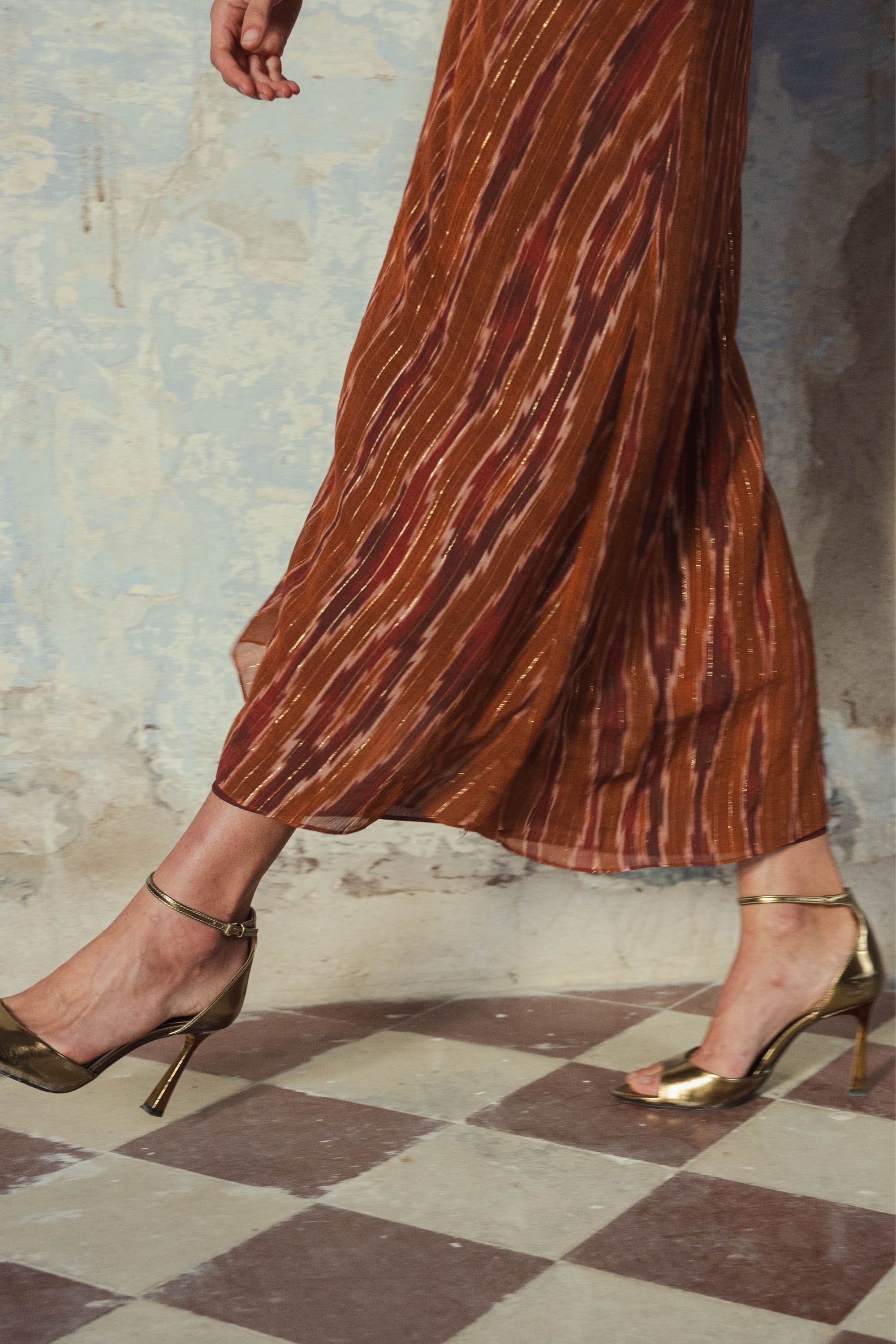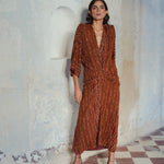 The caldera Indian ikat dress belongs to the party dress section of Barey's new guest collection for AW25.